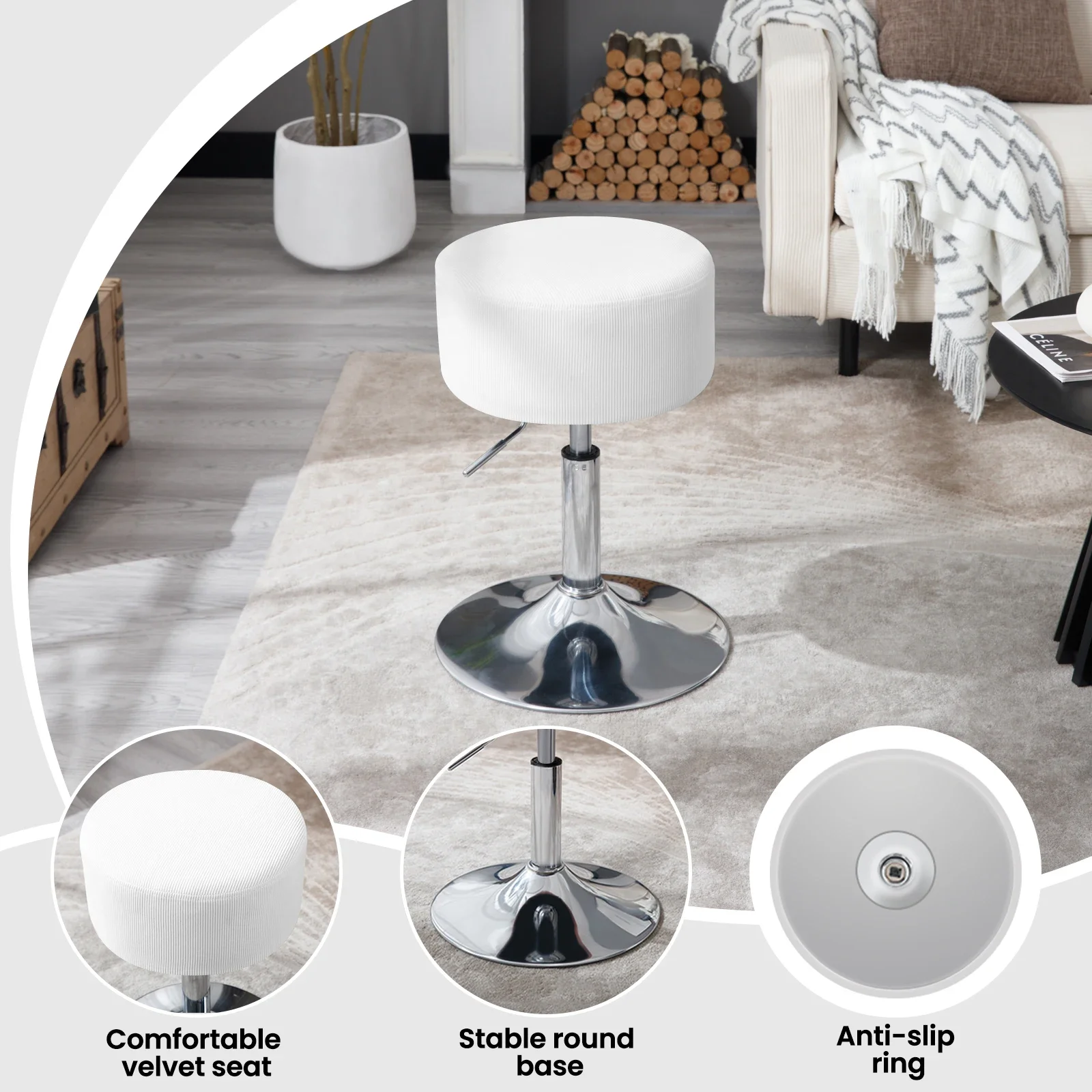 1PC White Round Swivel Bar Stools Height-Adjustable Makeup Stools Corduroy Padded Stools for Office Kitchen Home