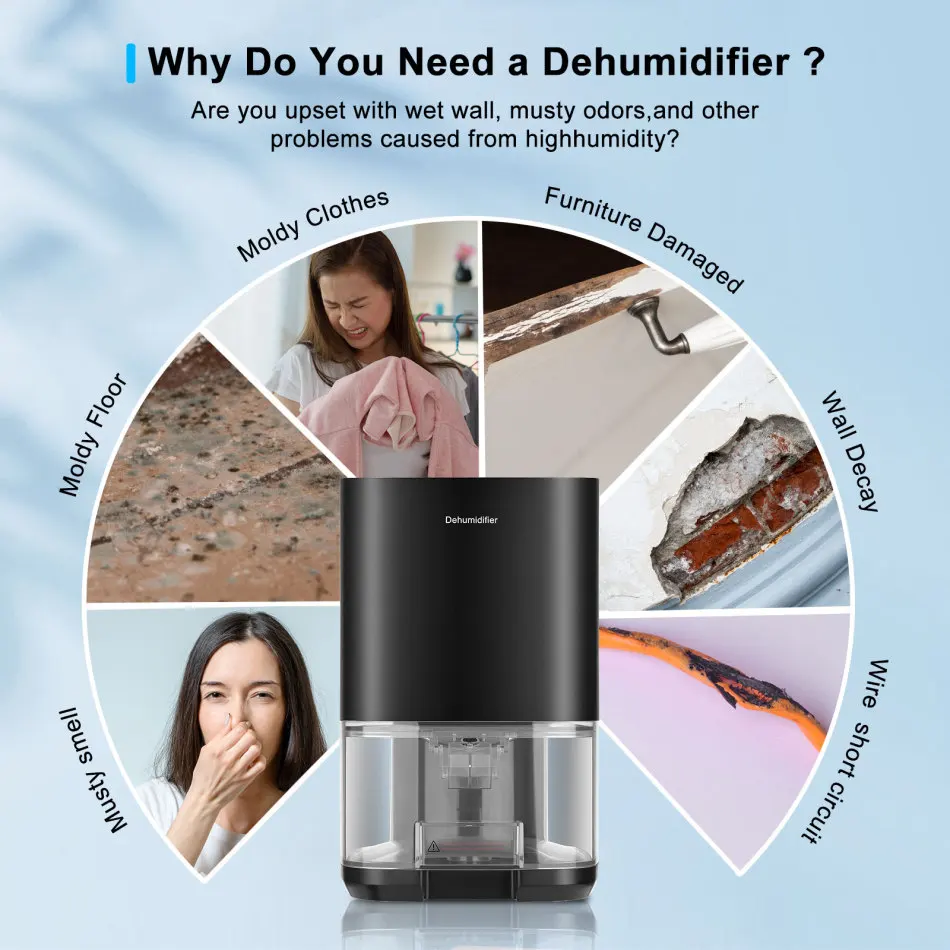 WITH HANDLE AND REMOVABLE FILTER: The home dehumidifier is easy to move since the handle is lightweight for small rooms. The filter on the back reduces dust and purifies the air.
