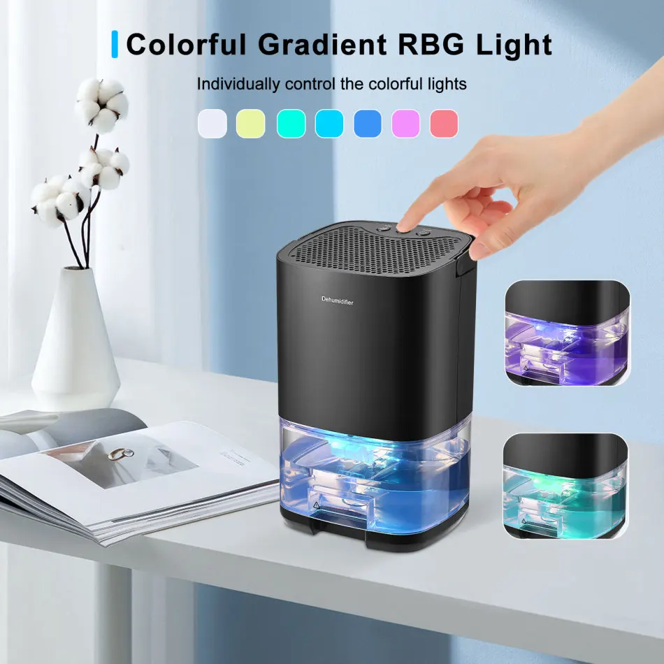 Colored LED Lights: The dehumidifier comes with controllable colored LED lights, you can control the LED lights to a fixed color or a changing color, or turn them off individually. LED lights are used for ambience rather than lighting.