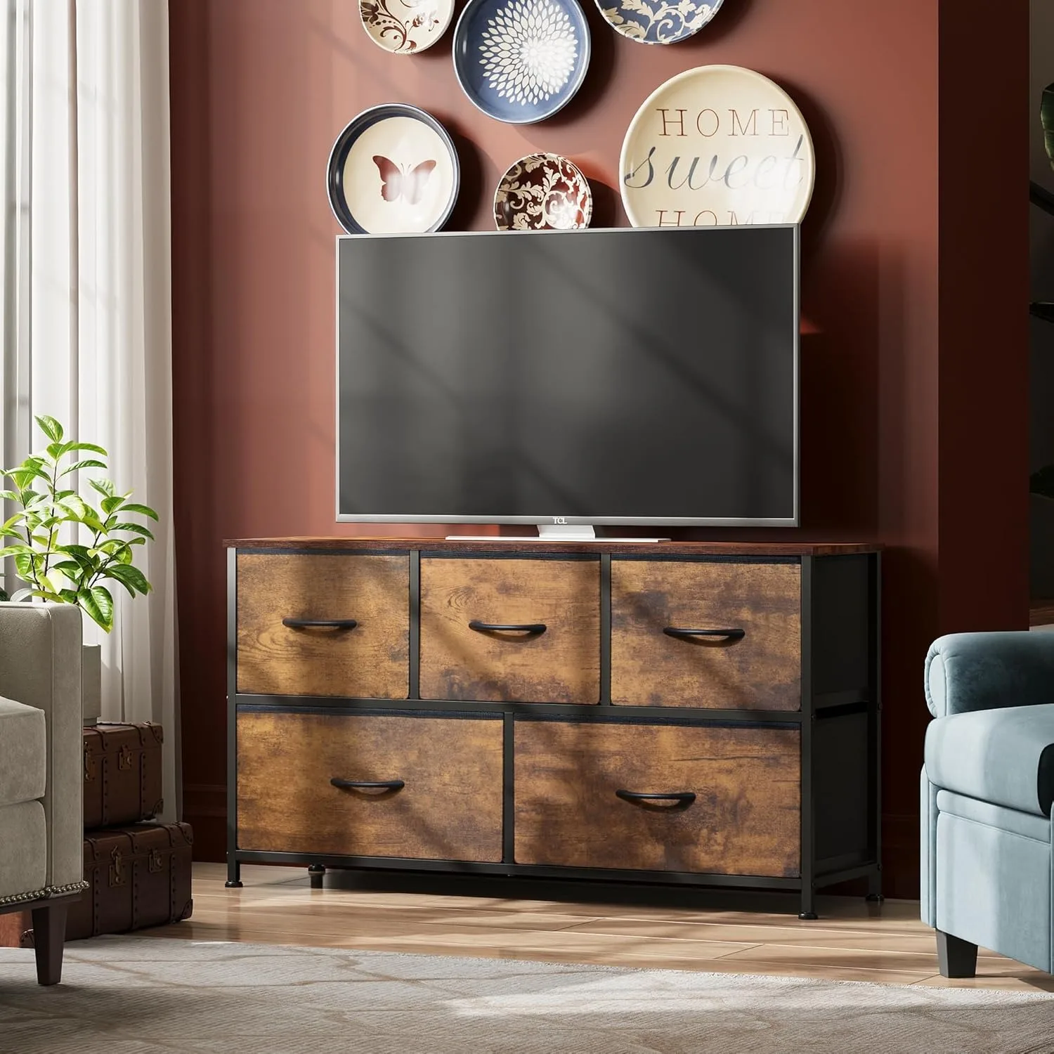 Chest of Drawers,5 Fabric Drawers Cabinet with Easy Pull Handle,Wood Top and Sturdy Steel Frame for Bedroom,Living Room