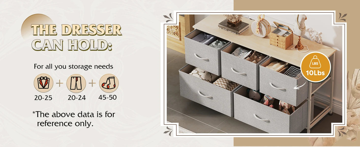 - Premium Materials:We use high-quality materials and sturdy handles to ensure the fabric dresser is long-lasting and safe. Improved wood and enhanced structural design address concerns of fragility, providing a reliable and durable storage solution.