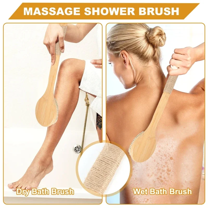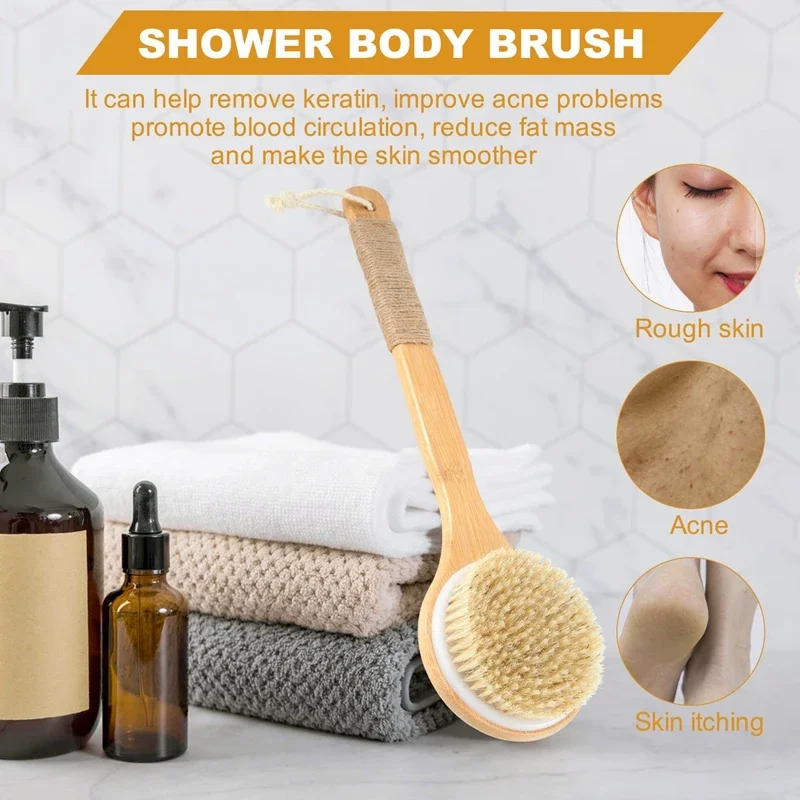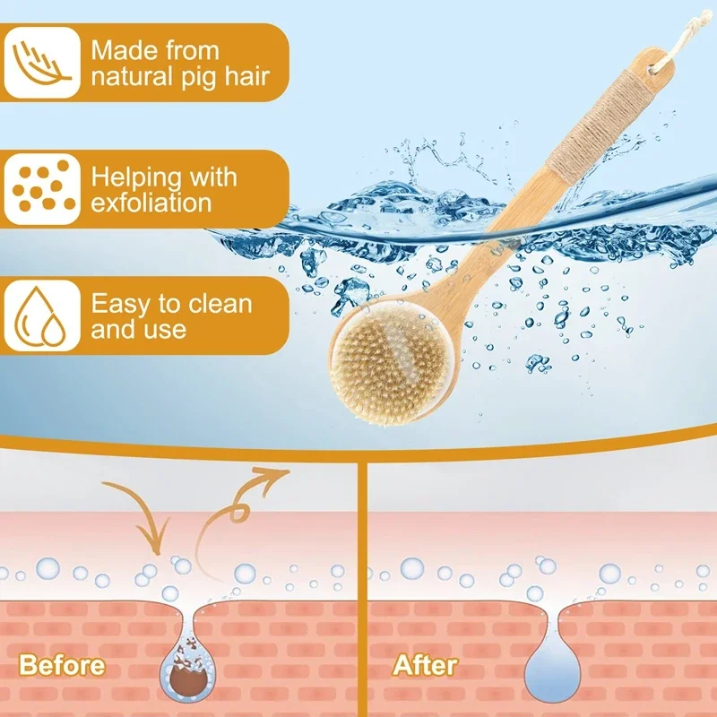 Dry Skin Body Brush Bath Exfoliating Brush Natural Bristles Back Scrubber With Long Wooden Handle For Shower, Remove Dead Skin,