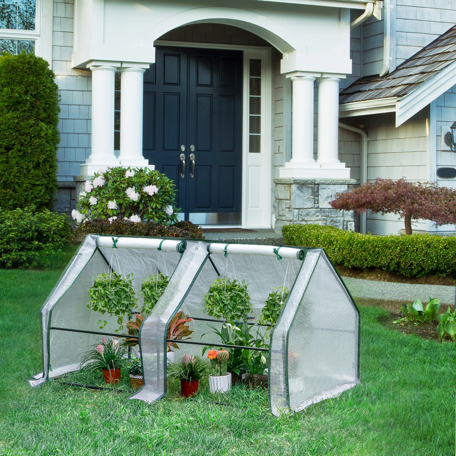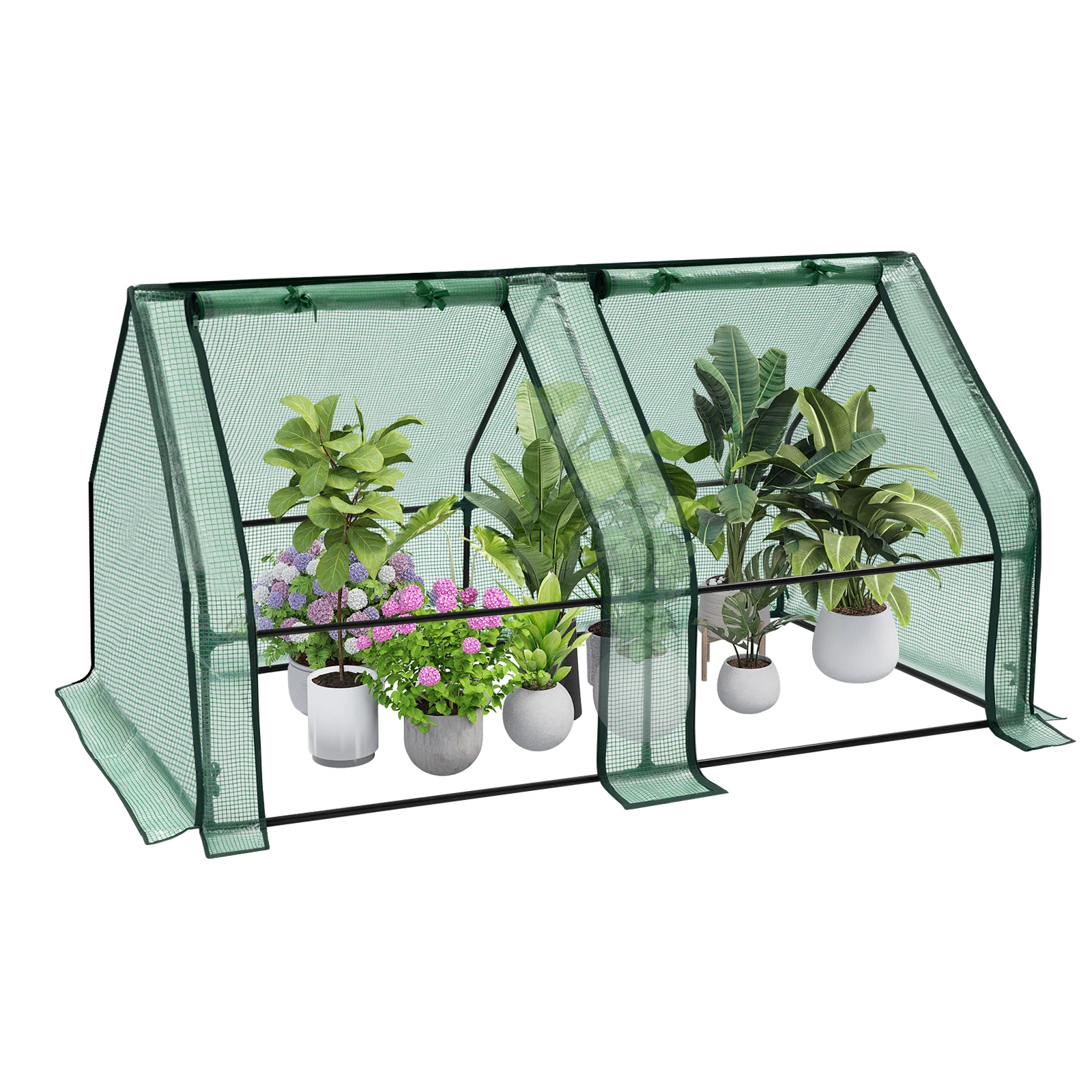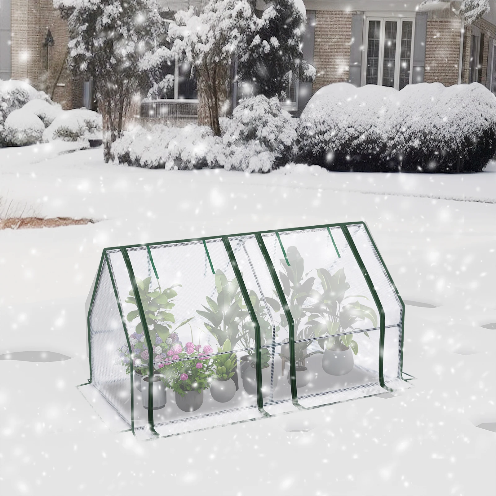 Foil Garden Greenhouse Cold Frame with Roll-Up Doors 4 Pegs Reinforced PE Tarpaulin Warm House for Plants Flowers Tomato Outdoor