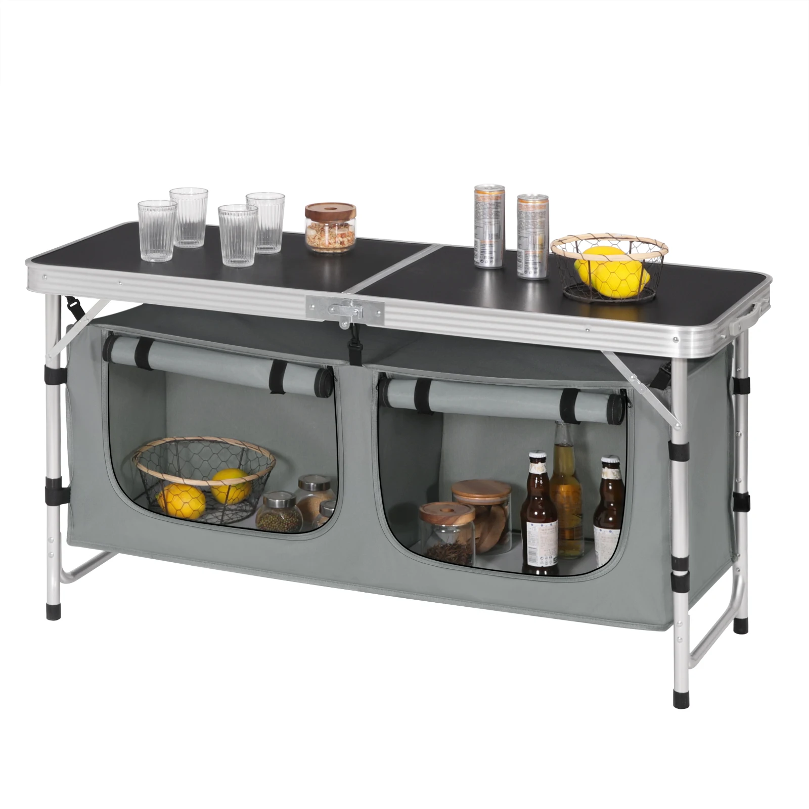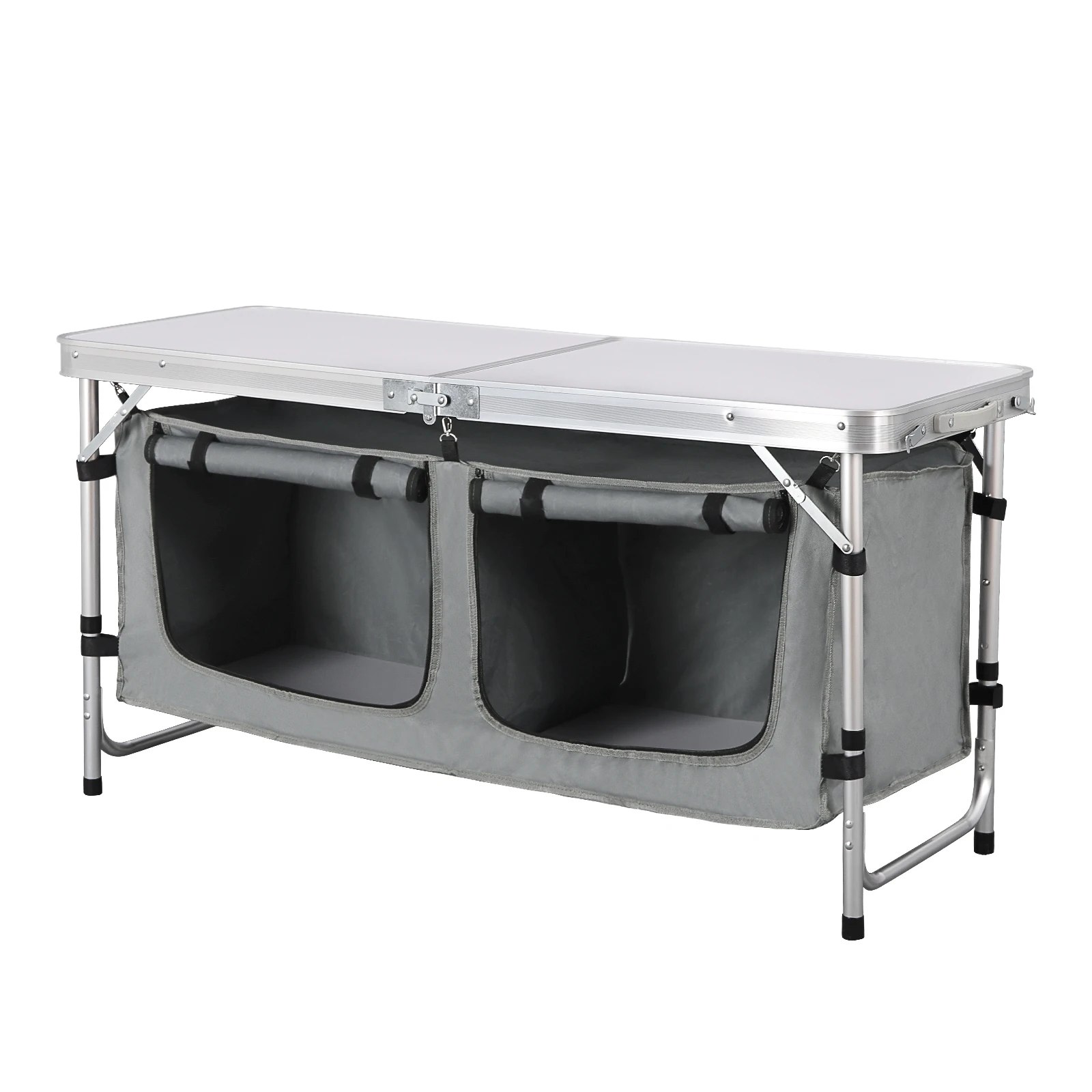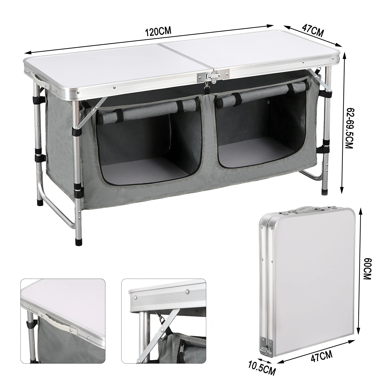 Folding Picnic Table Kitchen Camping Cupboards Aluminum Suitcase Table with Storage Bag Adjustable Height Outdoor Garden Table