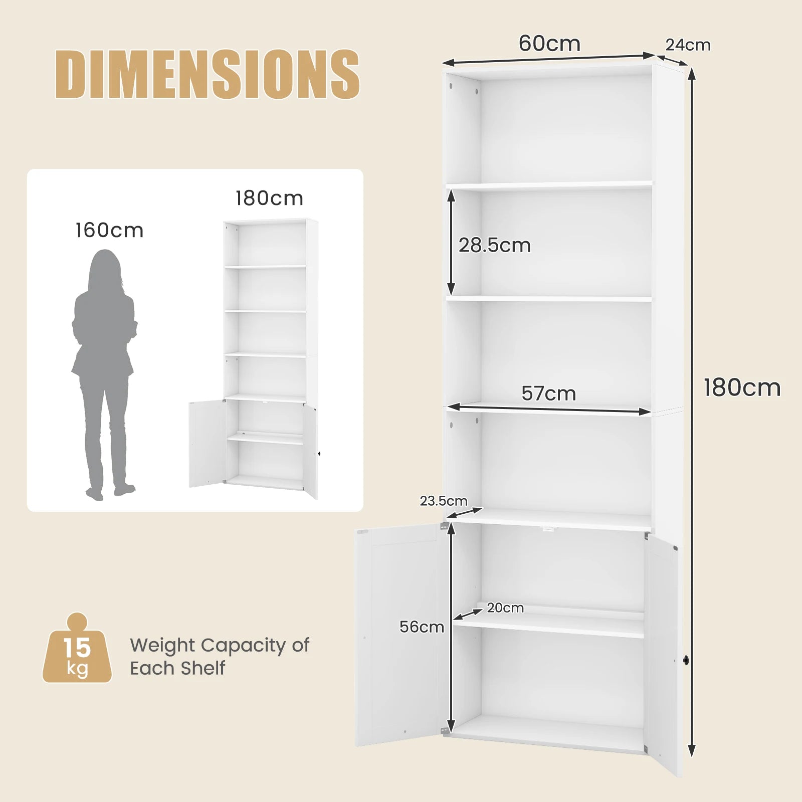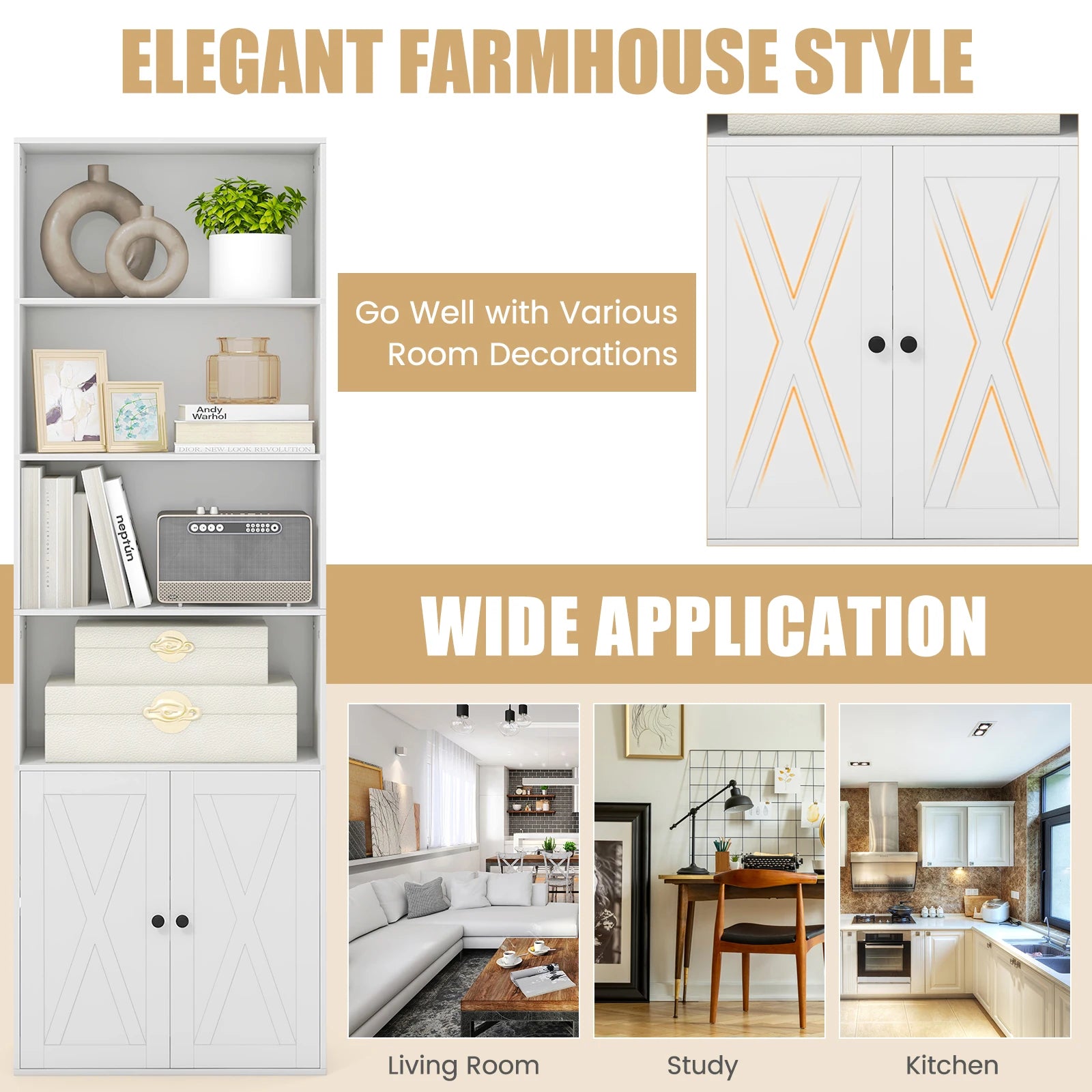 GOFLAME 6-Tier Freestanding Bookcase, Modern Bookshelf with Farmhouse Style Cabinet Doors