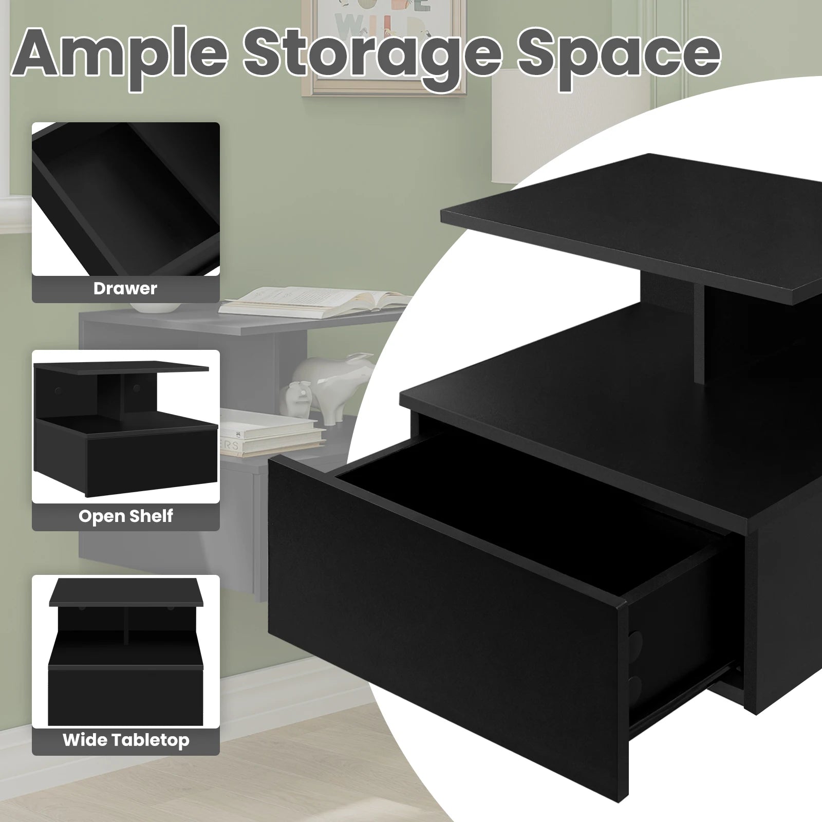 Modern Wooden White/Black Hanging Bedside Table Wall Shelf 40x35x31cm Nightstand with Drawer for Bedroom Home