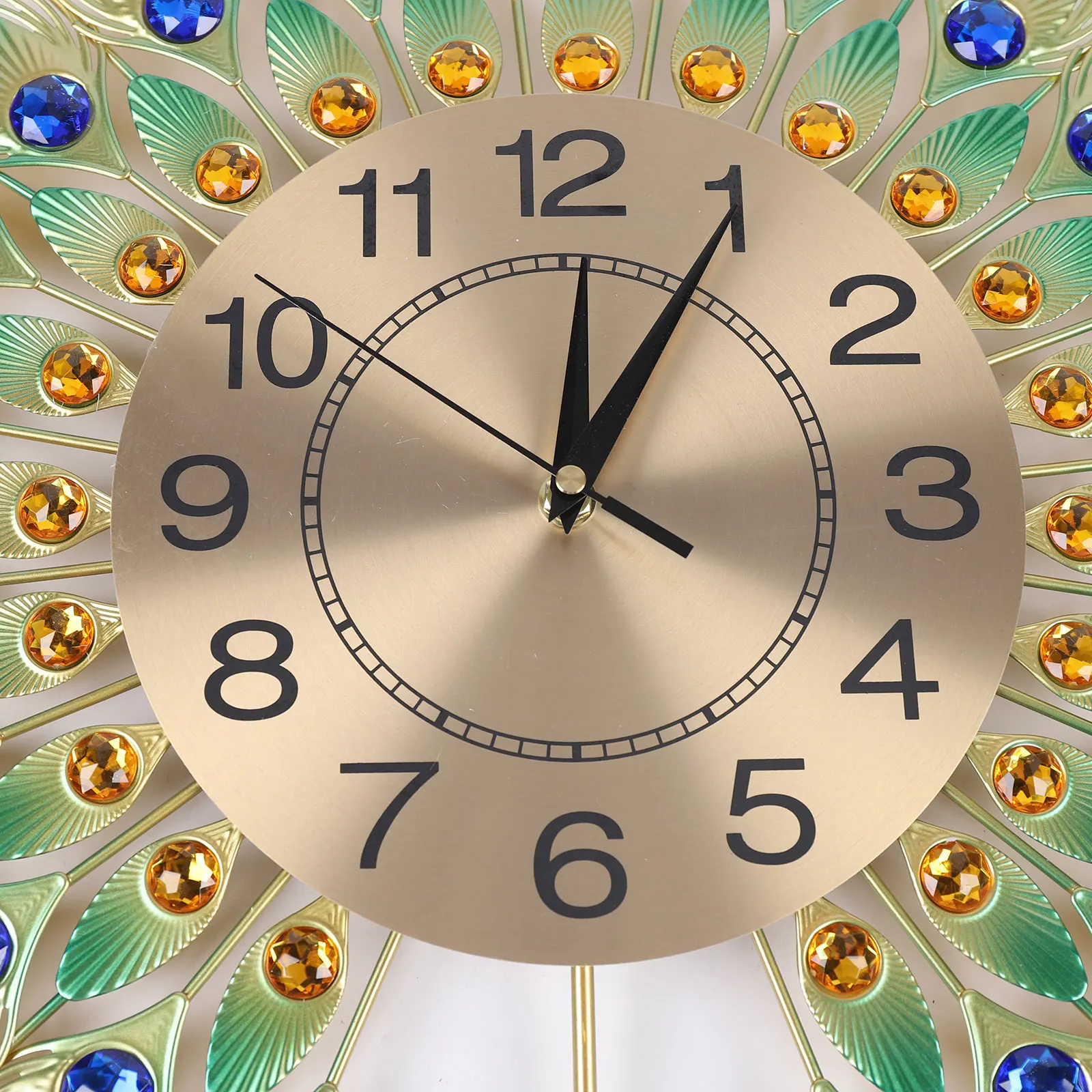 Peacock Clock Metal Silent Wall Clock None Ticking Decorative Large Wall Clock for Living Room Home Decor