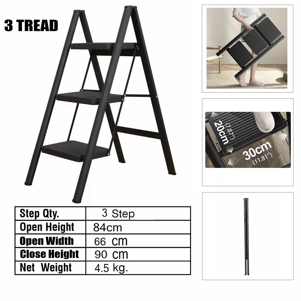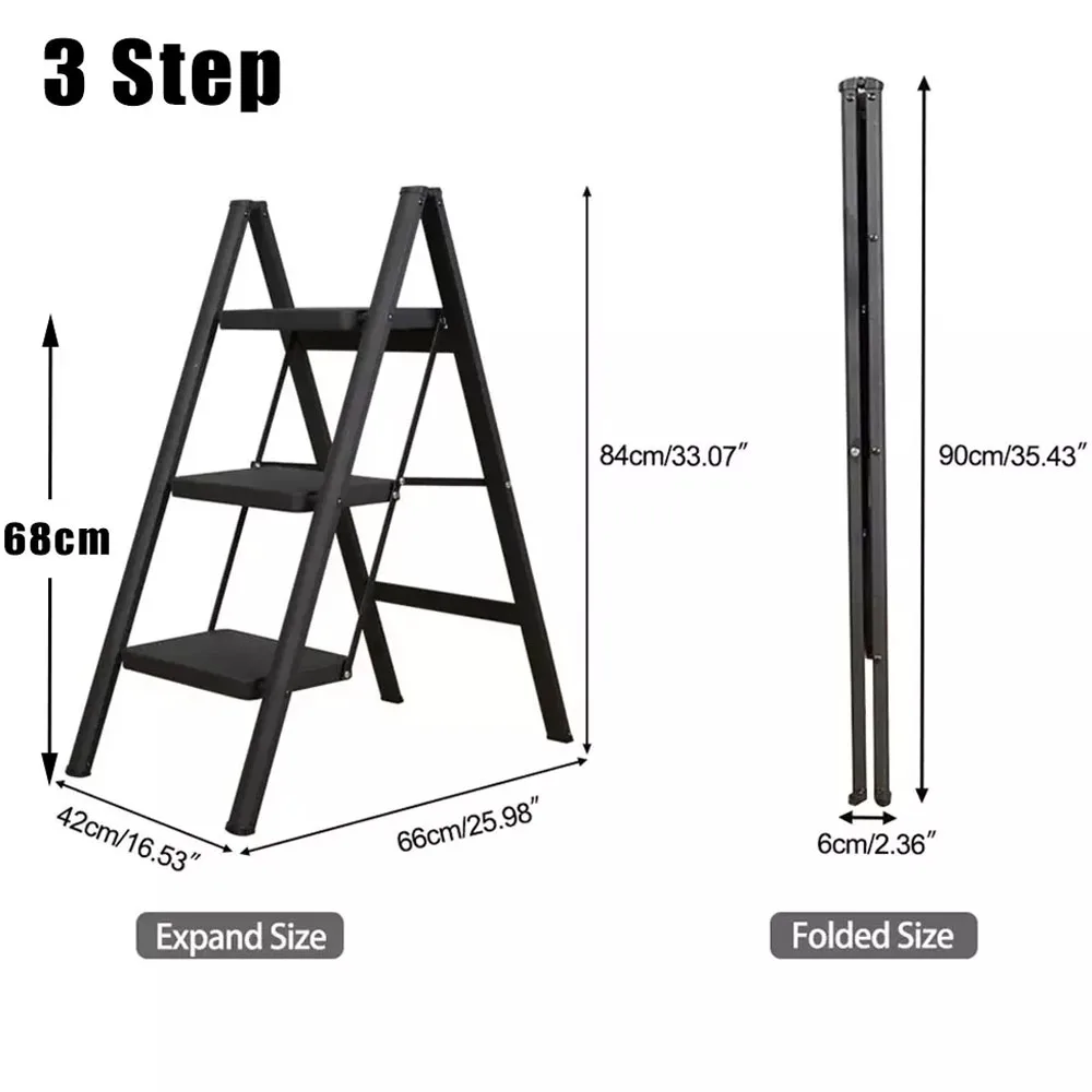 Portable Multifunctional Folding Ladder 3 Step Foldable Step Stool Anti-slip Wide Pedal Ladders Storage Shelf Flower Pot Stand