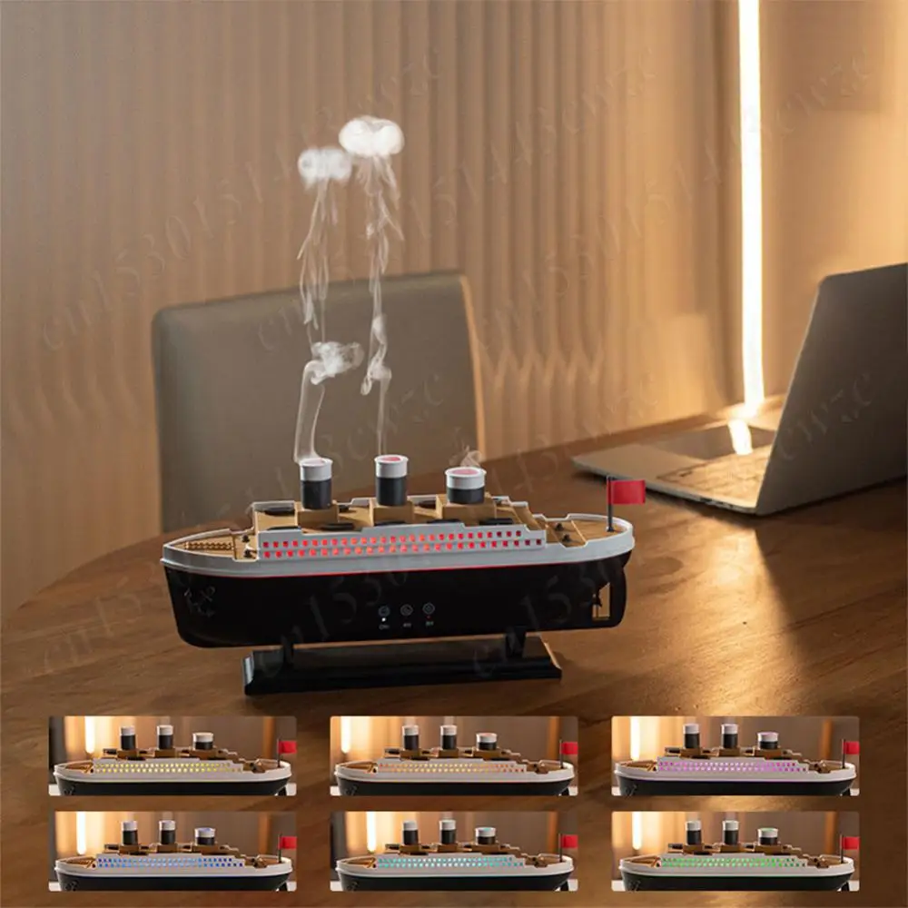 Ship Model Decoration Air Humidifier 250ml Ocean Liner Essential Oil Diffuser Jellyfish Smoke Ring Spray Aroma Diffuser For Home