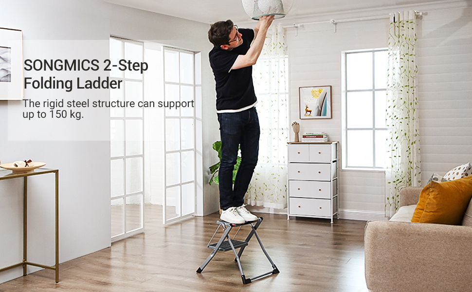 [For Different Situations] Taking books from the top shelf, hanging curtains, wallpapering or gardening, everything would be difficult without a stepladder. This SONGMICS folding steel step ladder is the one for you!