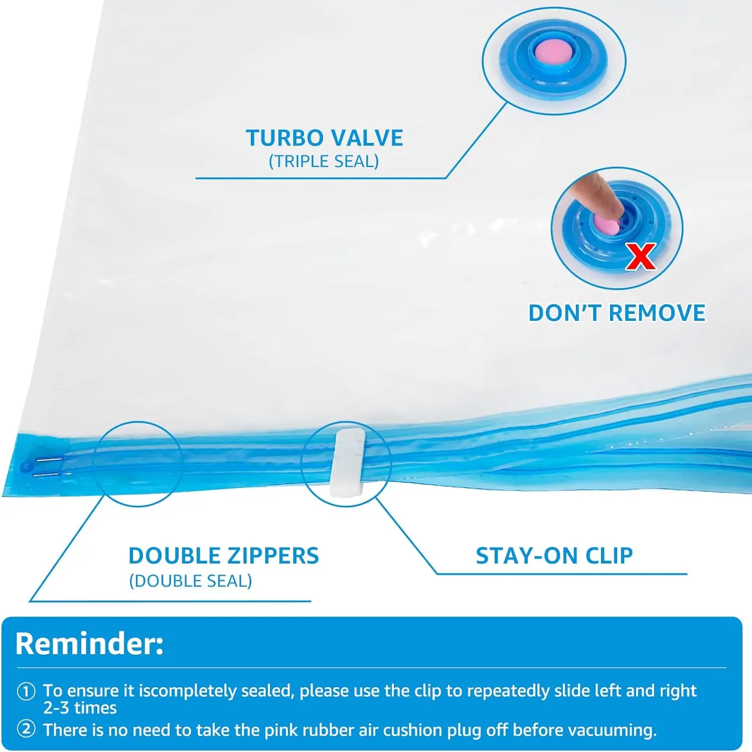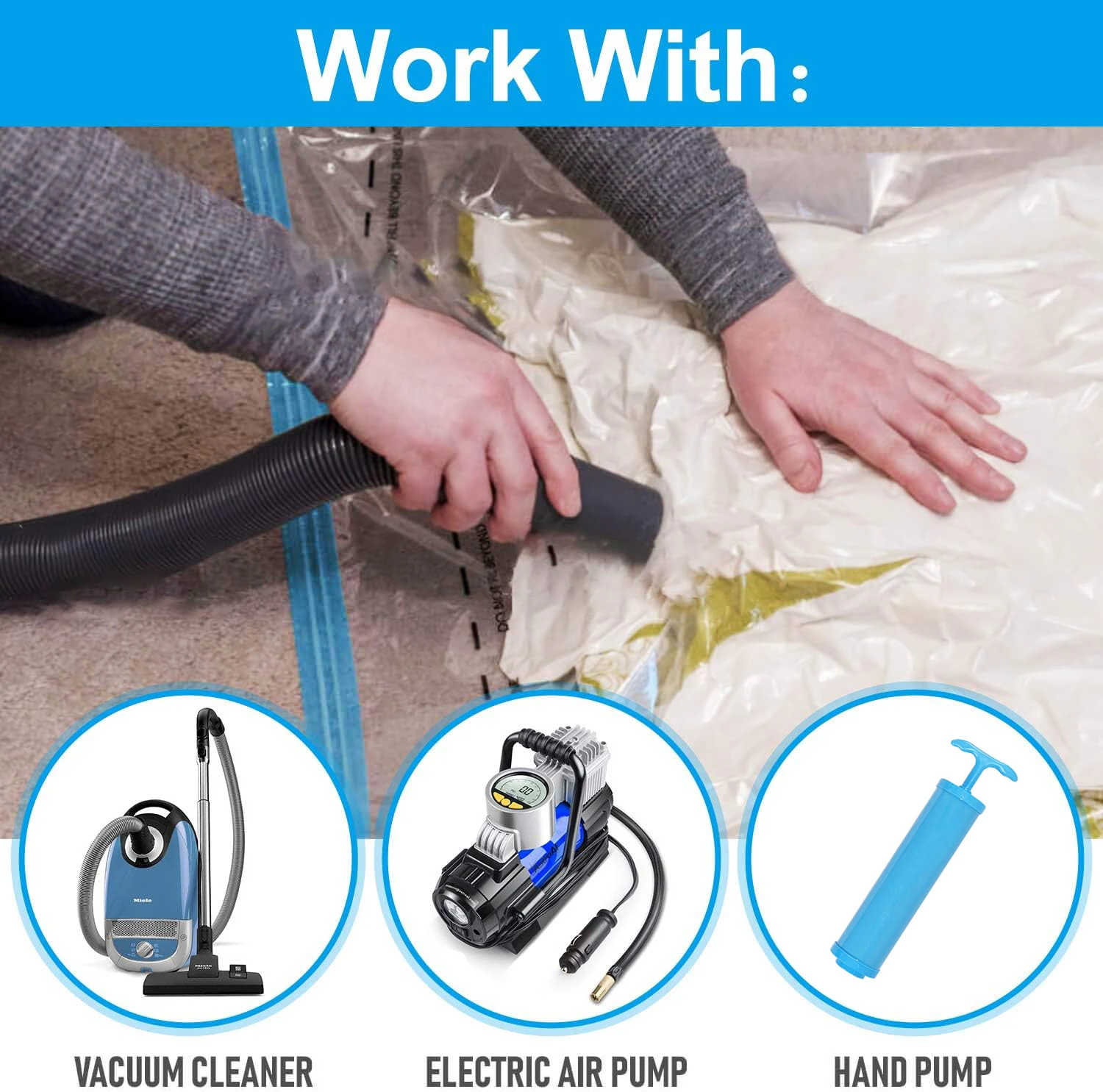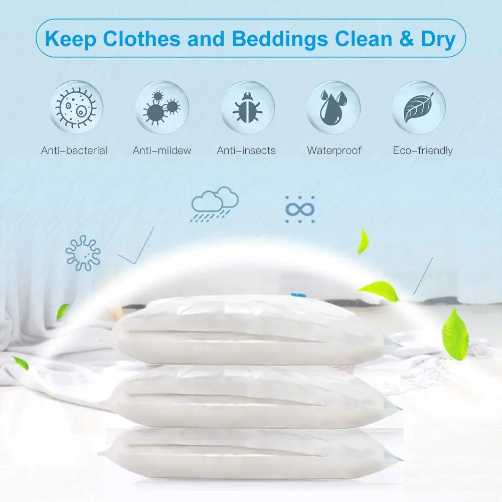 Vacuum Storage Bags with Hand Pump, Space Saving Compression Bags for Clothes, Blankets and Bedding, Reusable and Easy to Use