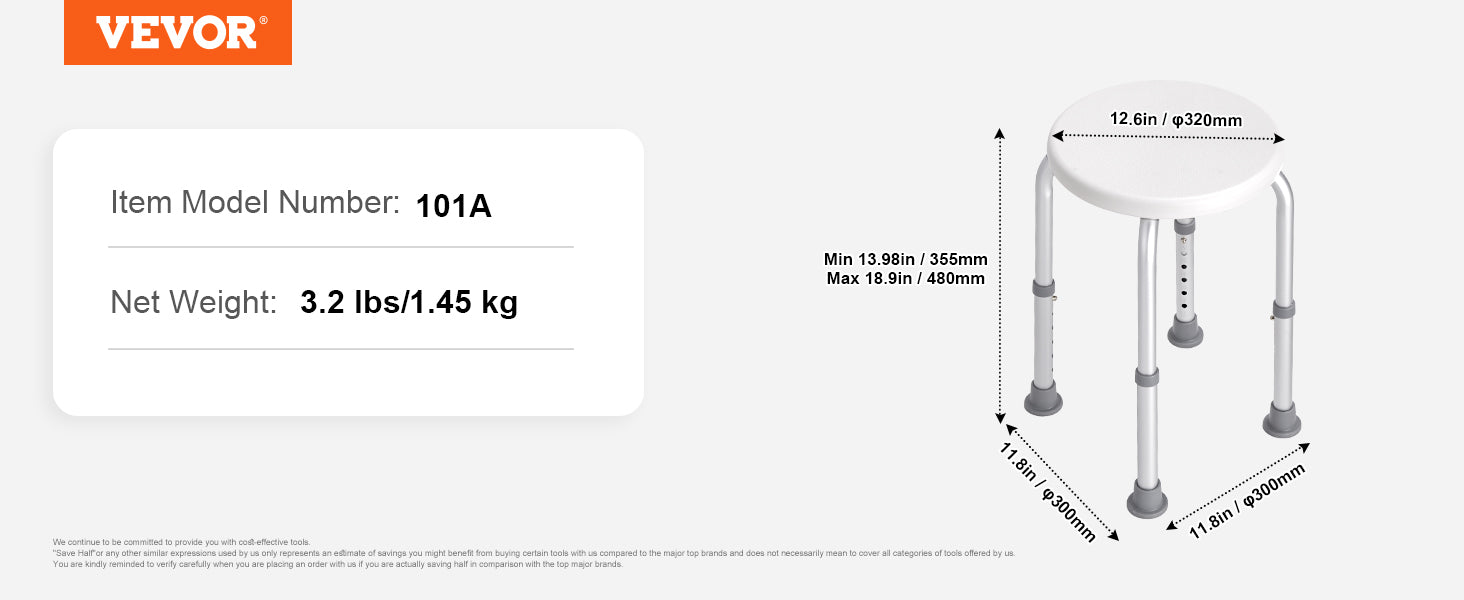 - Adjustable Height for Custom Comfort: Customize your comfort height with our adjustable bath stool. The shower chair for inside tub has 6 height settings (13.98-18.9 inch/355-480 mm, 1 inch/25 mm increment) to cater to various user heights. The spring-loaded push-button ensures the height setting stays secure without shifting.