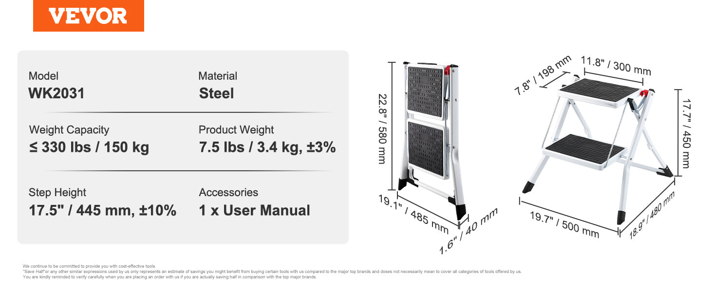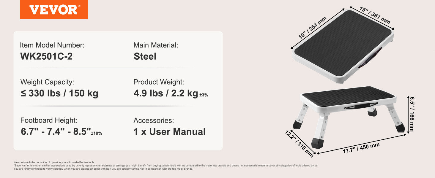 Constructed with robust and durable steel, our one-step stool ensures stability with an impressive 330 lbs / 150 kg load capacity, preventing shifting and collapse during use.