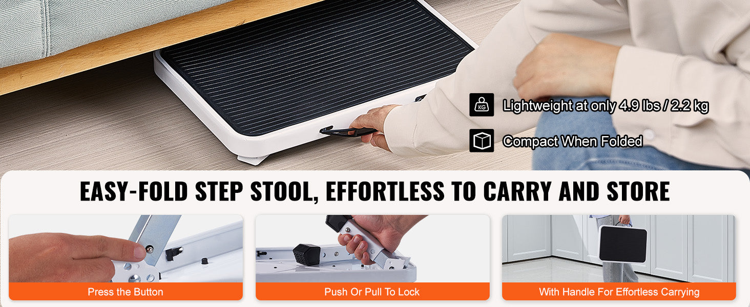 - Safe and Non-Slip: The step stool's platform features a full-coverage anti-slip layer to prevent slipping, and its rounded corners won't cut your hands. Thick rubber foot covers on all four stool legs increase friction, ensuring safe use even on smooth tile floors. Every detail is designed with your safety in mind.