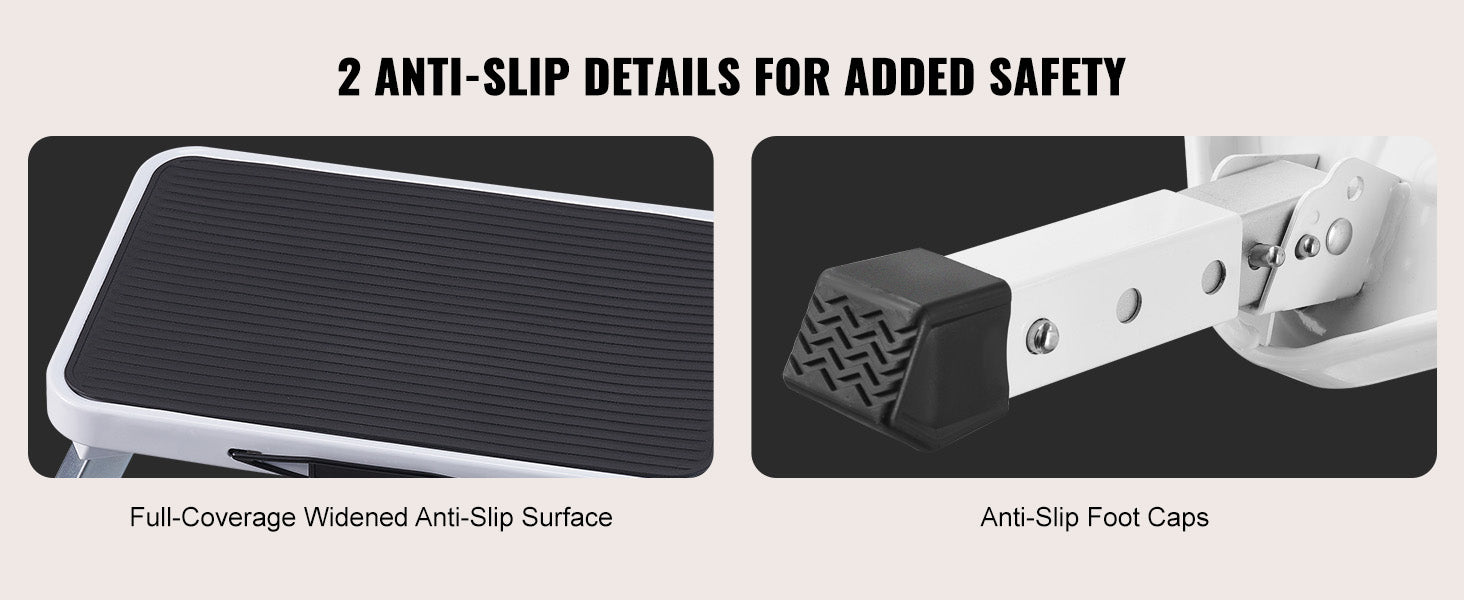 Our steel step stool prioritizes user safety, featuring a wide anti-slip surface and non-slip foot covers to prevent slipping, even on wet or smooth surfaces.