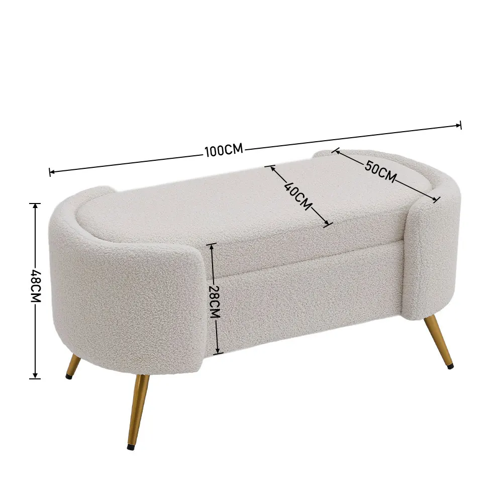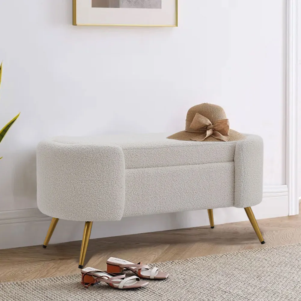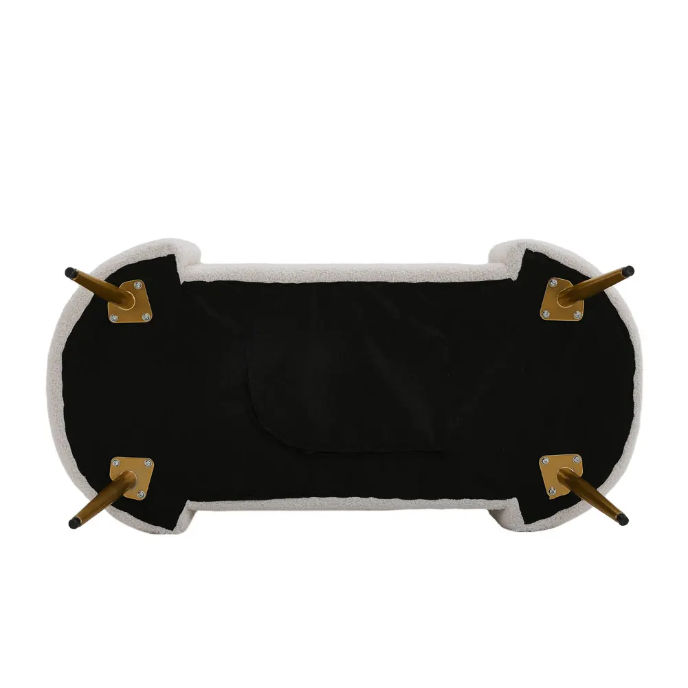 White Luxurious Comfortable Multifunctional Household Sherpa Upholstered Oval Bench