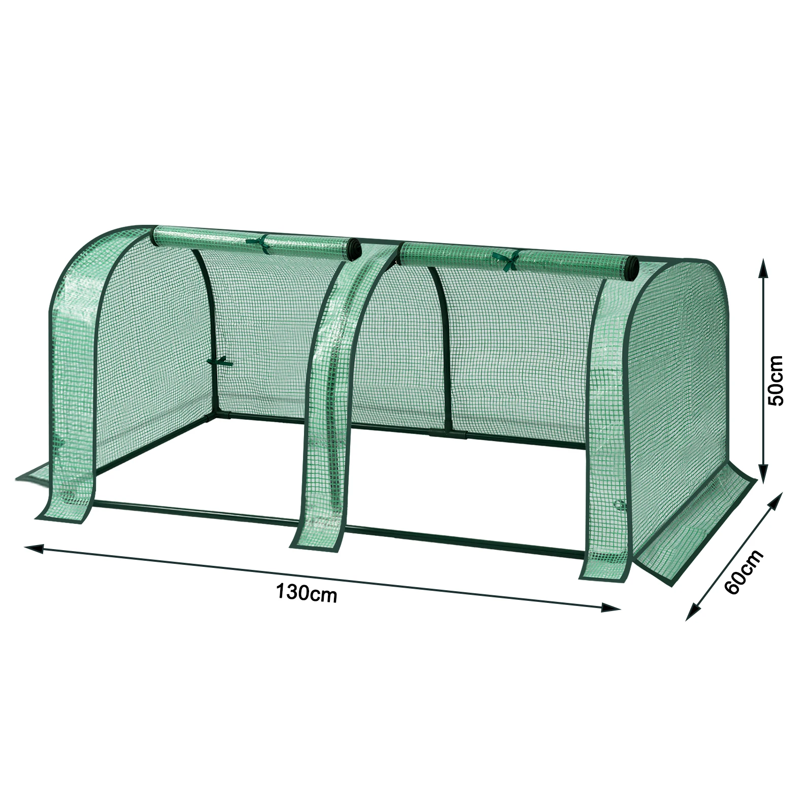 Strong and durable material: the film is made of ecological PE with mesh panels and has a high thickness of 130 g/m². The material is tear-resistant, waterproof, wear-resistant, corrosion and UV resistant. The sturdy construction of the plant house consists of powder-coated steel tubes with a diameter of 16 mm and is rust-proof