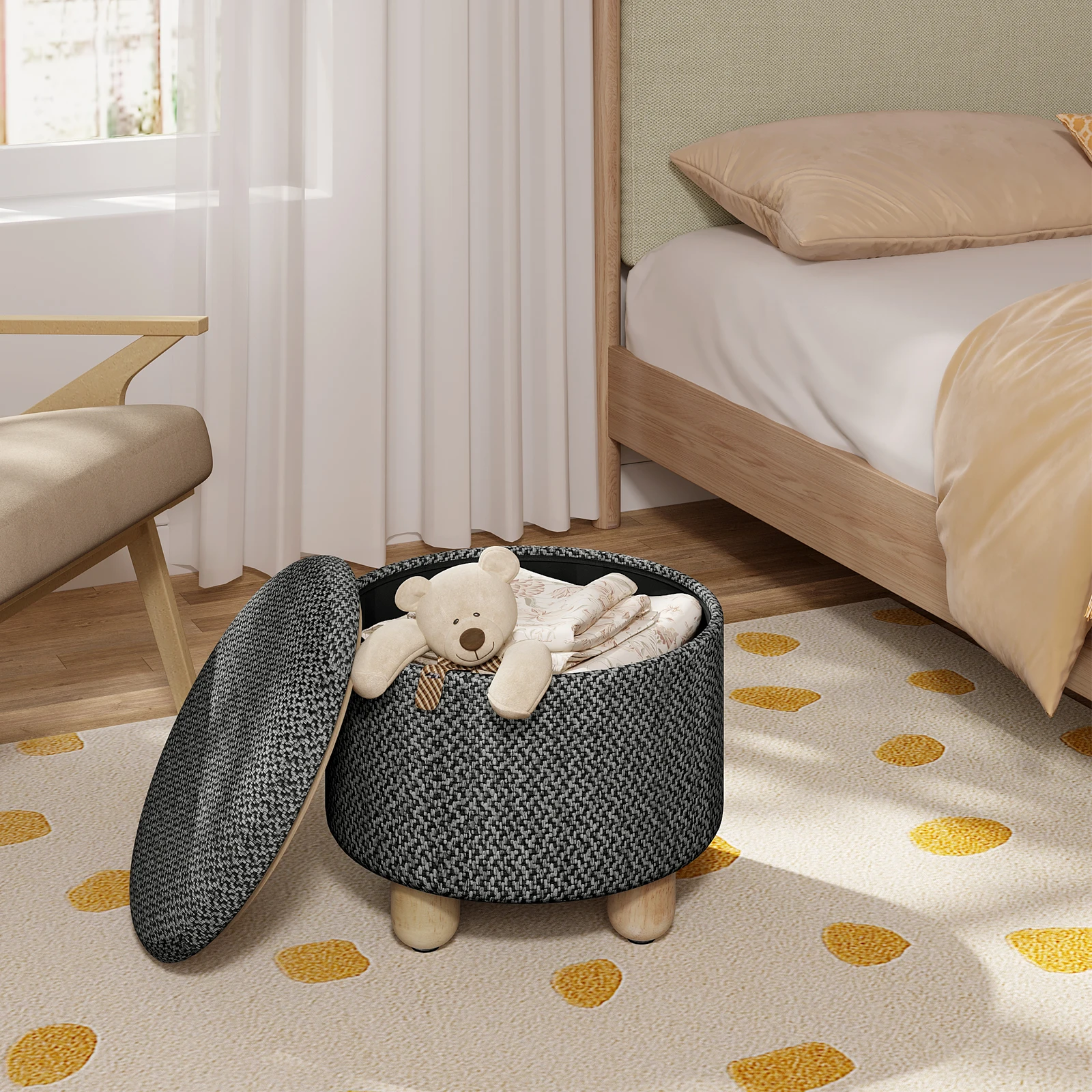 WOLTU Storage Pouf Upholstered Stool with Lid Ottoman Foldable Pouf with Pine Legs Space Saving for Living Room Bedroom Home